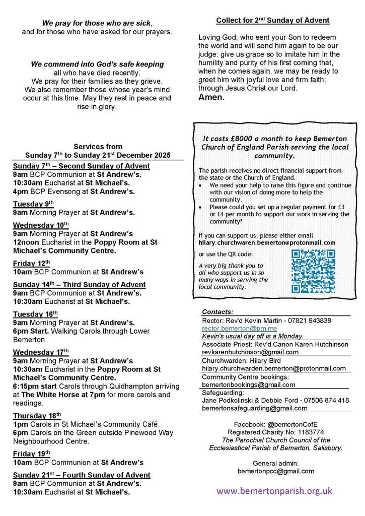 4pm BCP Evensong at St Andrew’s Church, Lower Bemerton. This service will last around 45 minutes with three hymns and some sung responses.