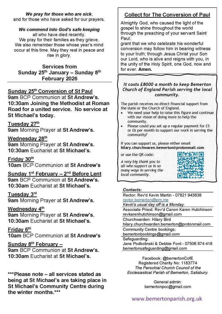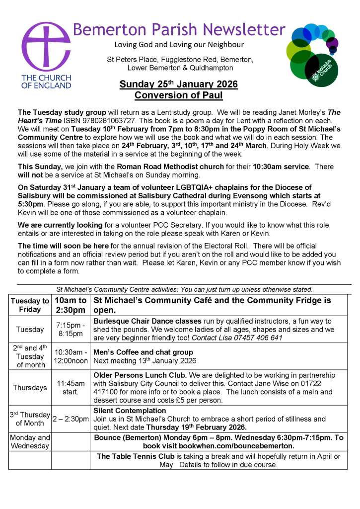 10:30am Today we are joining with the Roman Road Methodists for their 10:30am Service to celebrate Christian Unity Week. There won’t be a service at St Michael’s today.