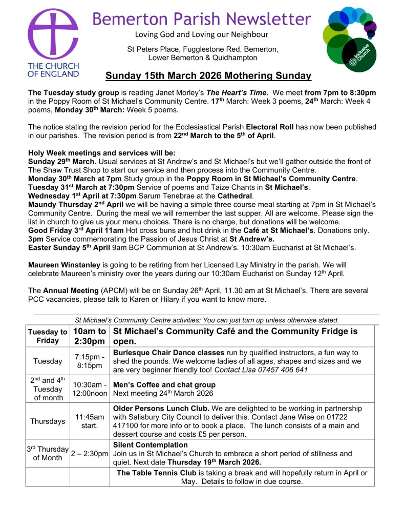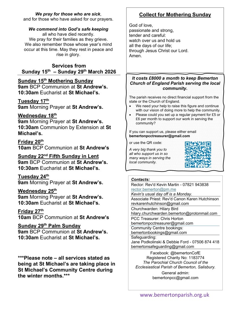 Sunday 15th March 2026 – Mothering Sunday
