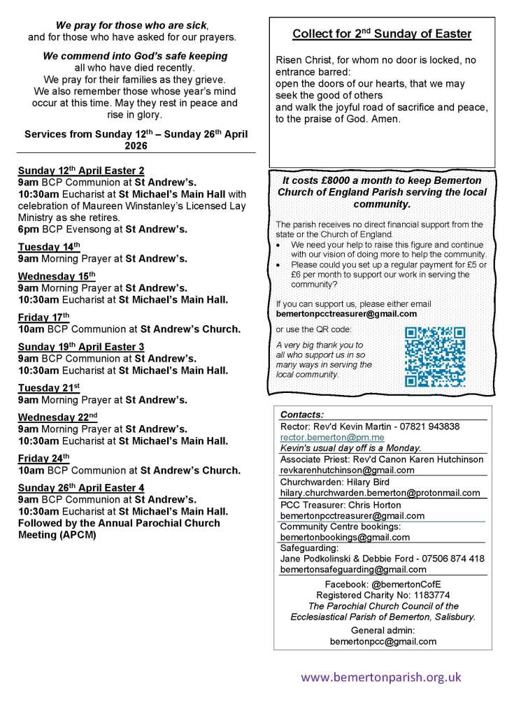10:30am Eucharist at St Michael’s Main Hall. A service using modern English and lasting 60 to 70 minutes. There are four hymns/songs with some other singing but you don’t have to sing if you prefer not to. At the end of the service we will say a prayer for Maureen Winstanley as she becomes Licenced Lay Minister Emeritus. Refreshments will be served after the service.