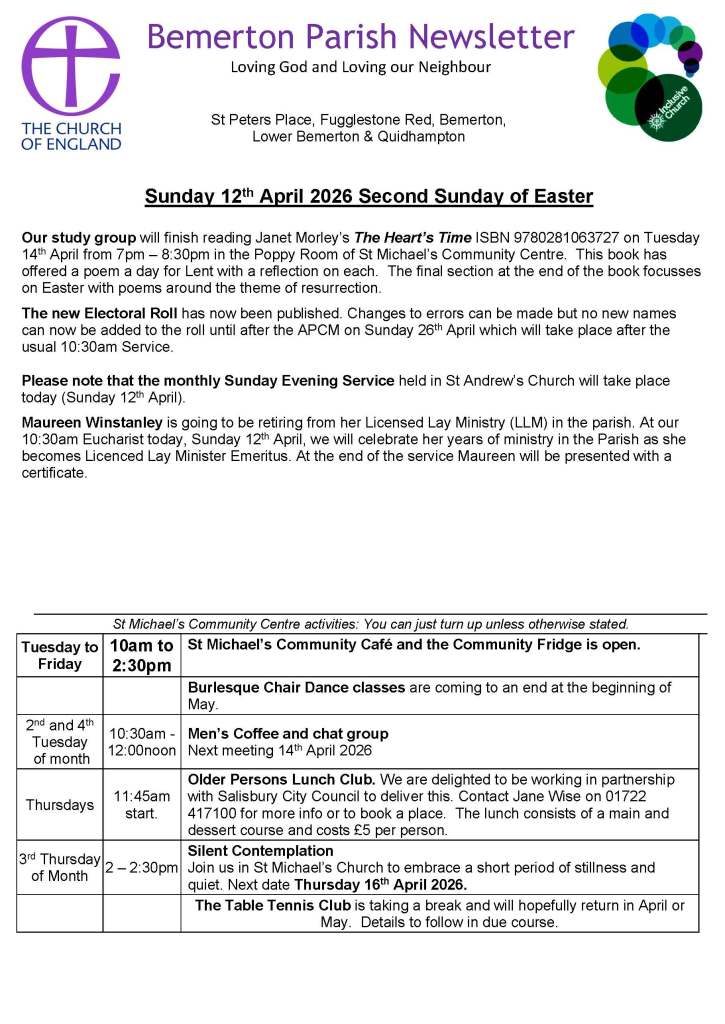 9am BCP Communion at St Andrew’s Church, Lower Bemerton. A said service using traditional English language lasting around 40 to 45 minutes.